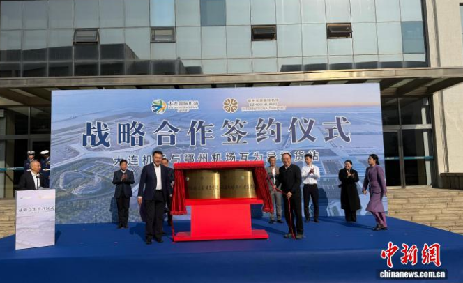 ?大連國際機場集團有限公司與鄂州花湖國際機場戰略合作框架協議簽署暨互為異地貨站揭牌儀式12日在遼寧大連舉行,標志著東北地區首座跨省異地貨站正式啟用,東北與華中地區聯手搭建雙向國際物流通道。